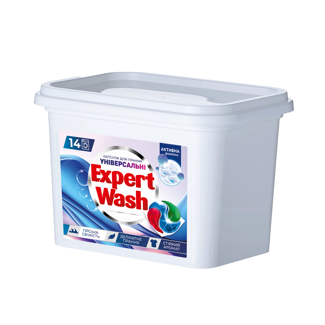 Laundry Capsules Expert Wash, universal Mountain Fresh 14pcs (Container)