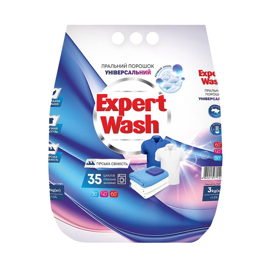 Expert Wash Universal Laundry Powder – Mountain Fresh is an all-purpose detergent powder made for everyday laundry needs. It delivers reliable cleaning across common fabric types and leaves a clean, refreshing scent inspired by mountain freshness.